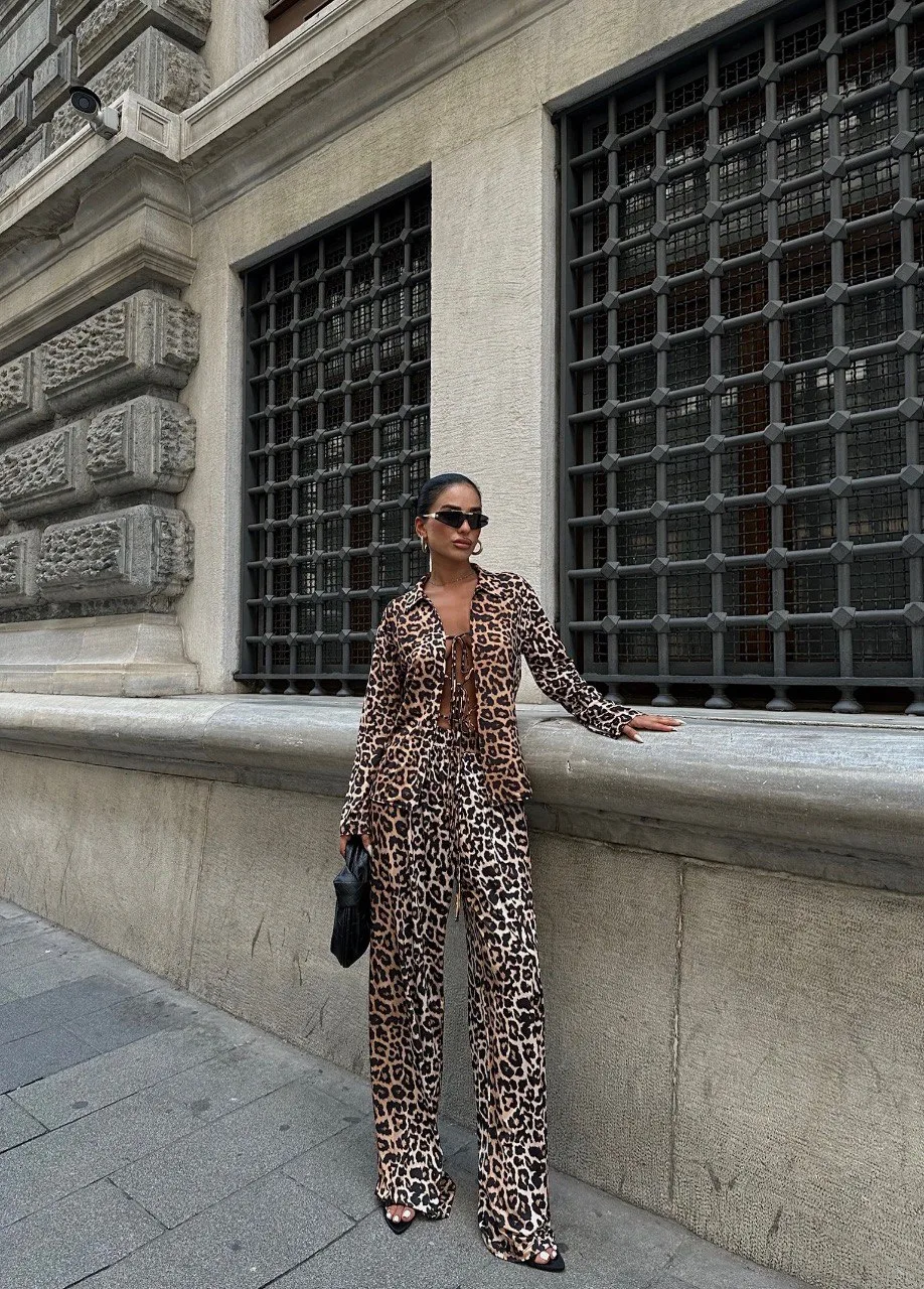 Високо квалитетен материјал односно полиестер со многу ликра со животински принт. Лесен за одржавање, не се гужва. Панталоните имаат ластик во струкот.