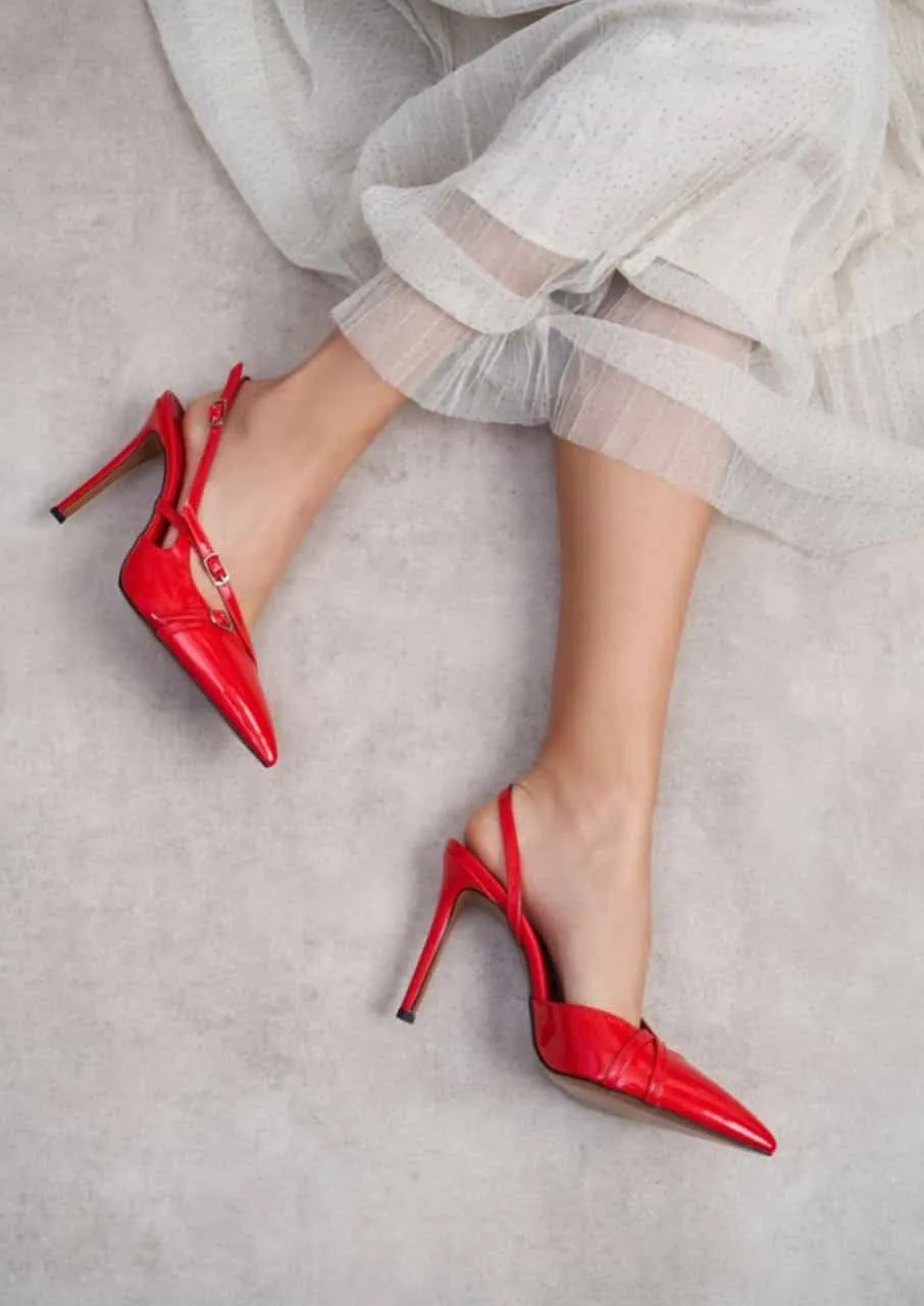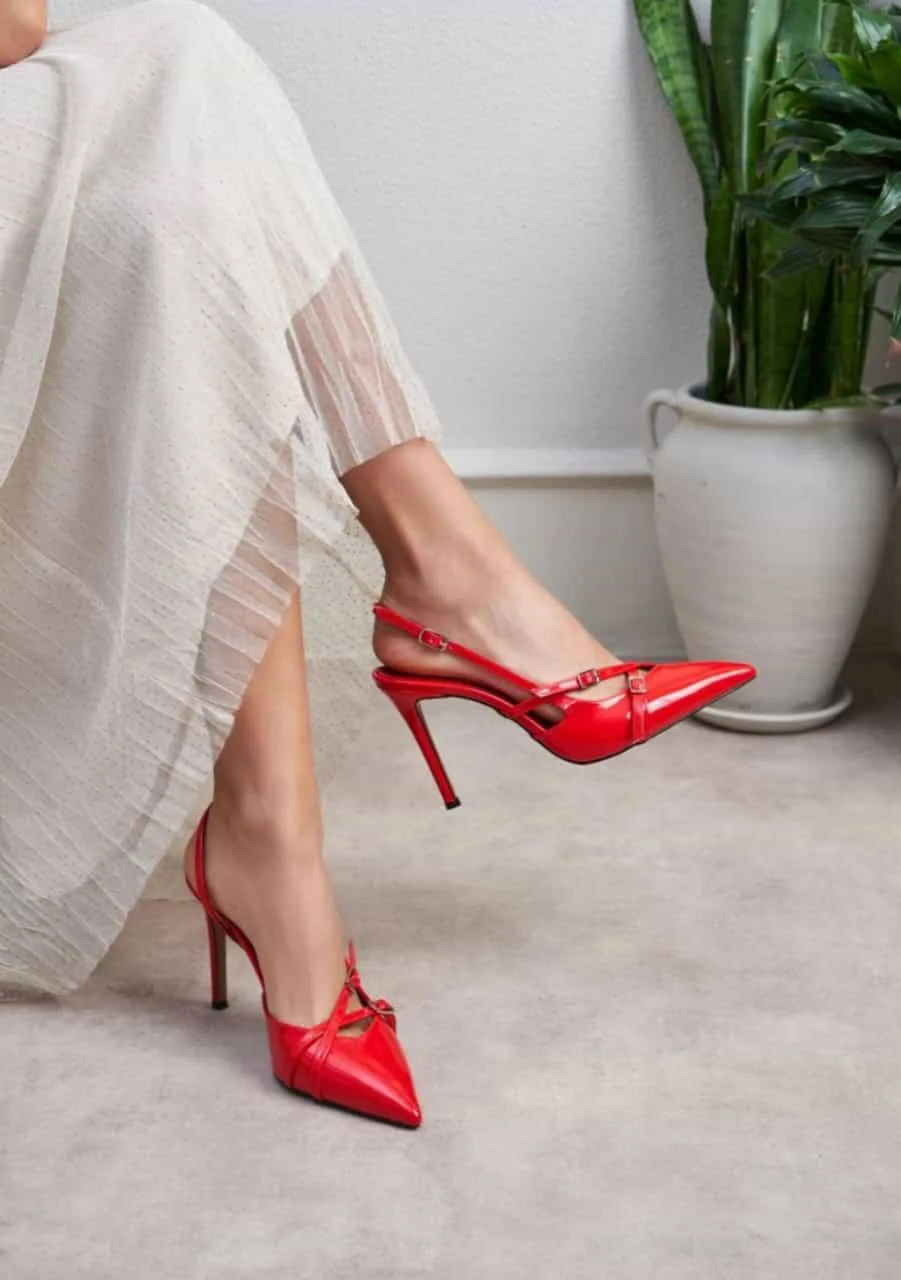 Моделот има две ременчиња, кои се прекрстуваат, висина на штикла е  10 см. Елегантно стои на ногата.