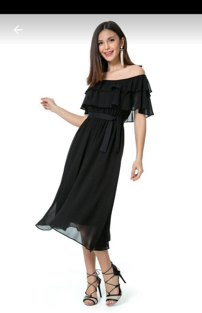 Фустан е изработен од мек ребрест паничен материјал со ликра. Со делот има струкот има отворен дел каде што има по две синџирчиња, кои можат и да се извадат. Од страната има шлиц.