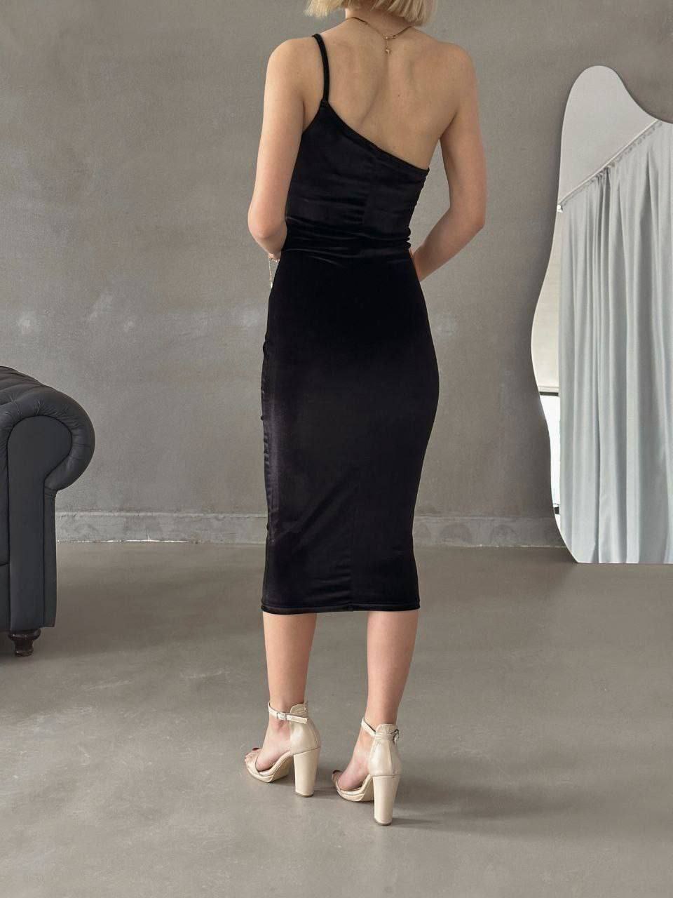 Црн плишен фустан