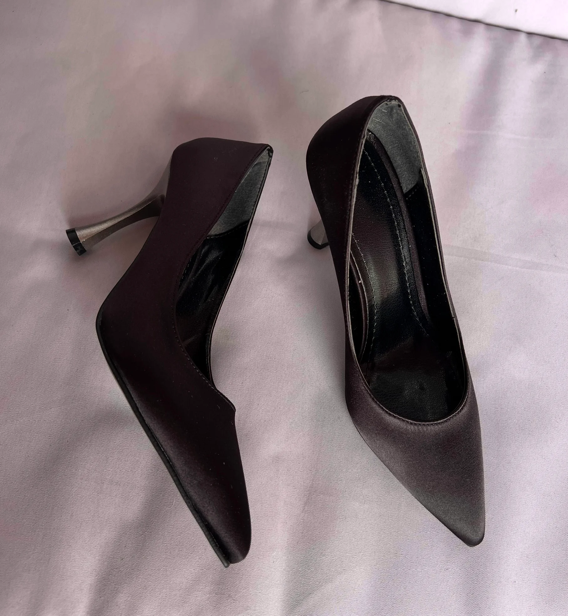Моделот е многу удобен, елегантно стои на ногата,  висина на штиклата е 10 cm. Иразботен е од црн сатен.