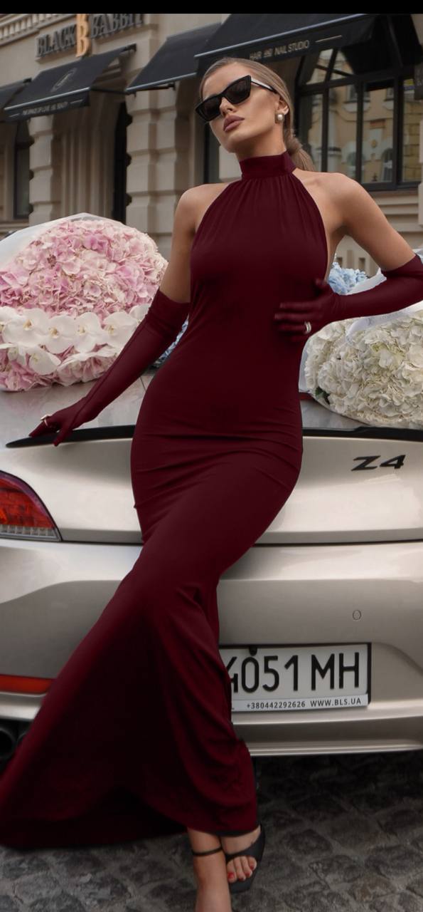 Моделот е посебен со тоа што има раквици заедно со него. Материјалот на фустанот и памук со ликра. Назад е со гол грб што го прави моделот попривлечен,