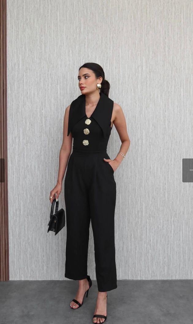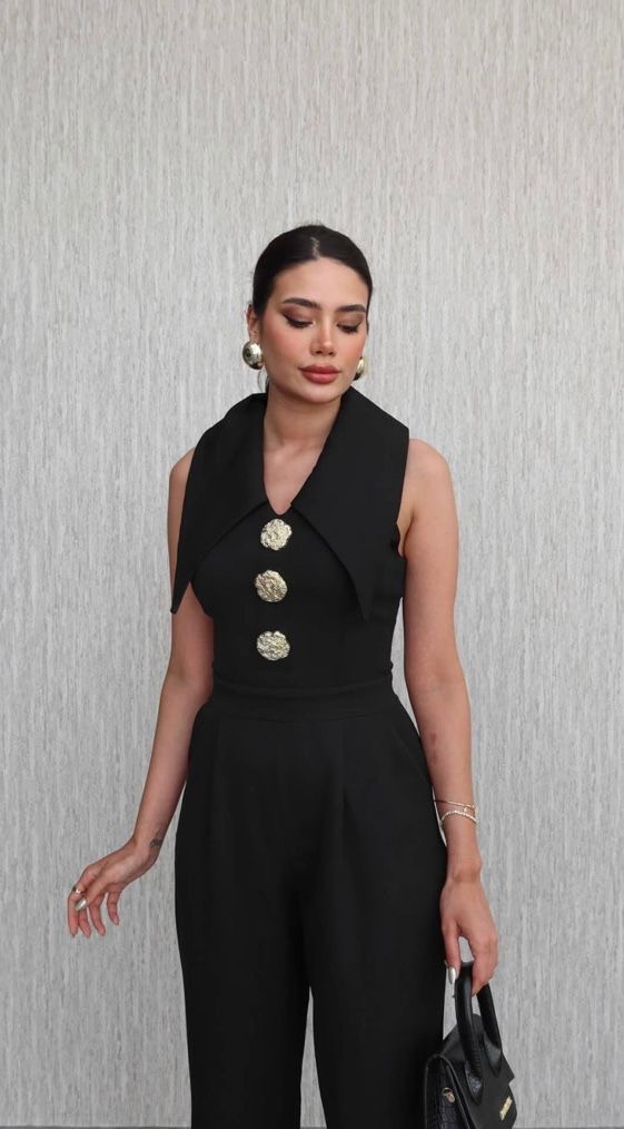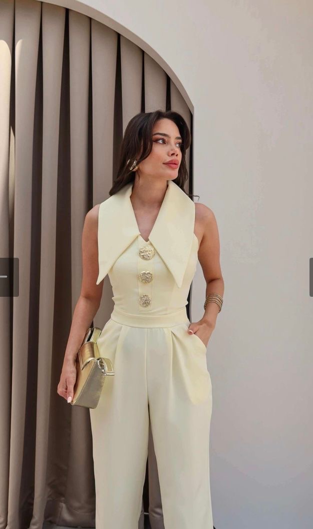 Комбинезонот  има три големи компчиња и голема јака,, кои му даваат посебен изглед на моделот. Моделот има патент.  Совршен модел за ова лето.
