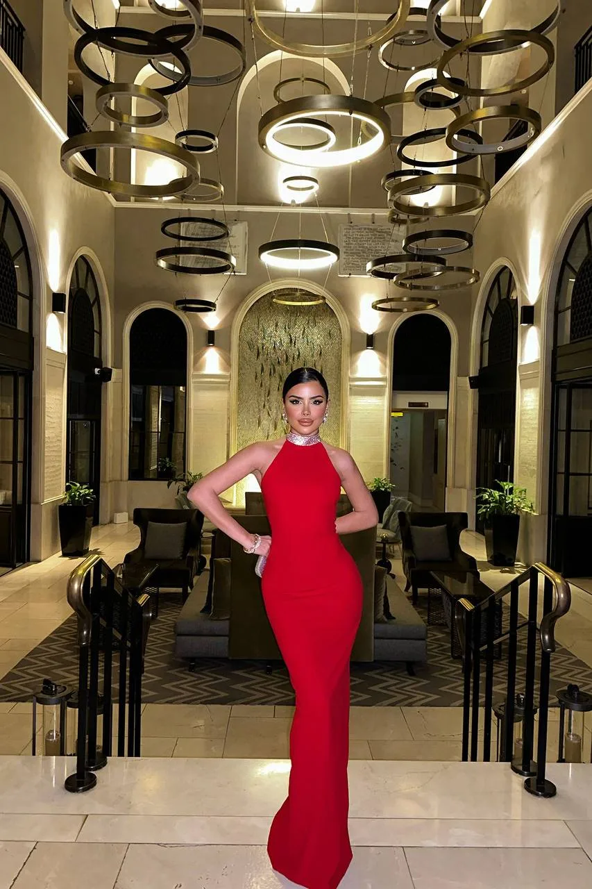 Фустанот е изработен од висококвалитет материјал, памук со ликра, на вратот има јака, која е  како гердан од циркони, назад фустанот има патент. Совршен модел да ја покажете вашата линија на телото.