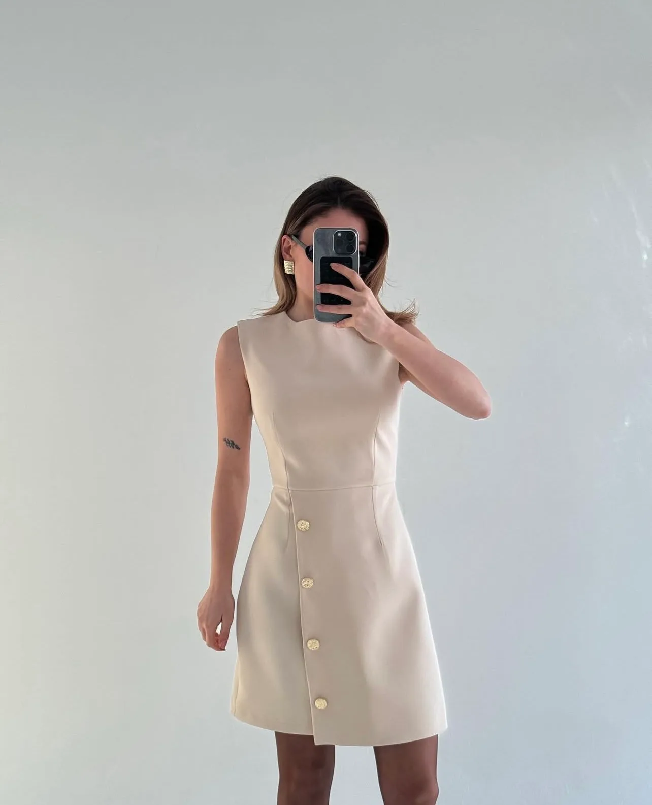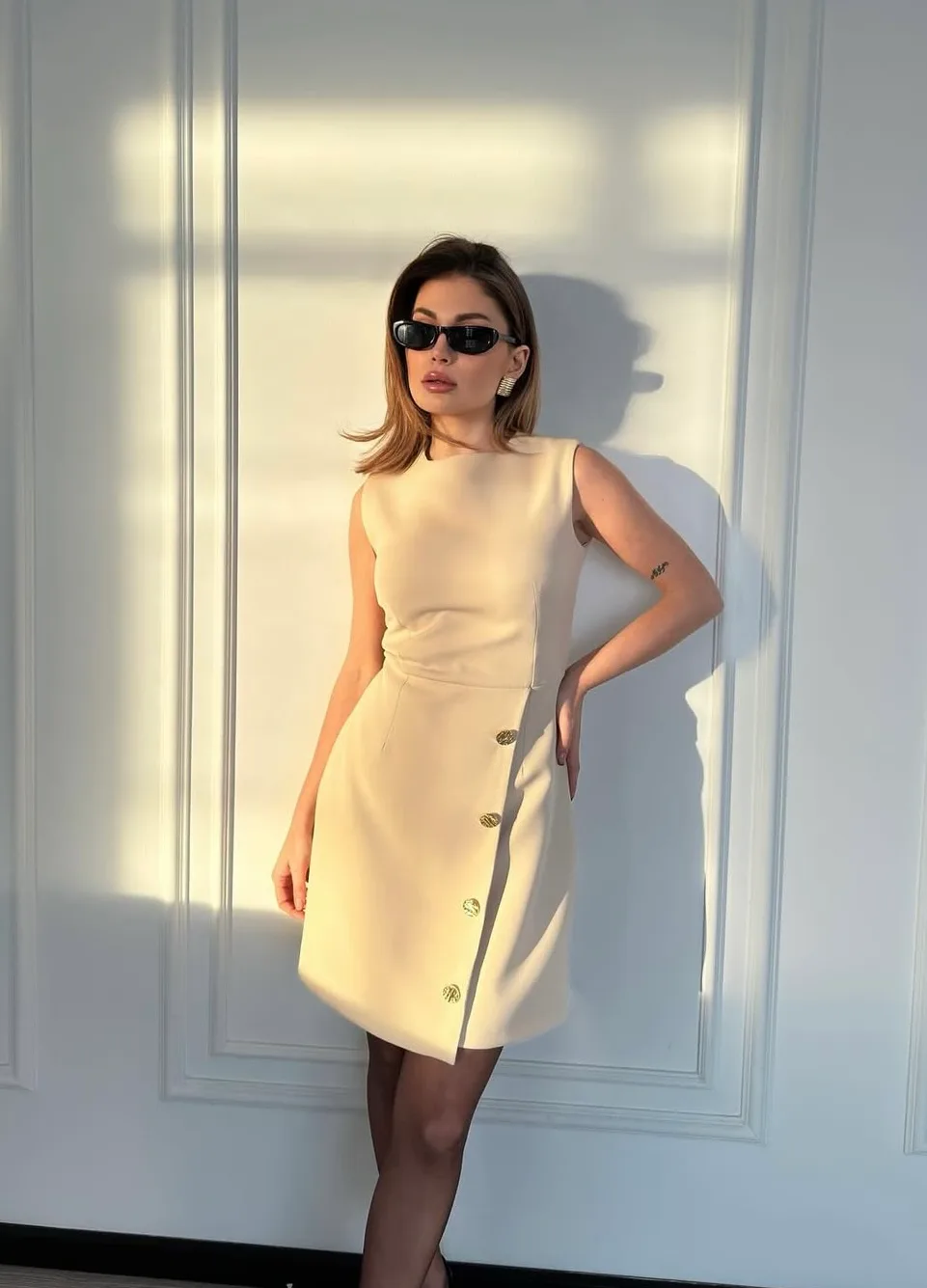 Долниот дел од фустанот е како здолниште на преклоп со четири златни копчиња.